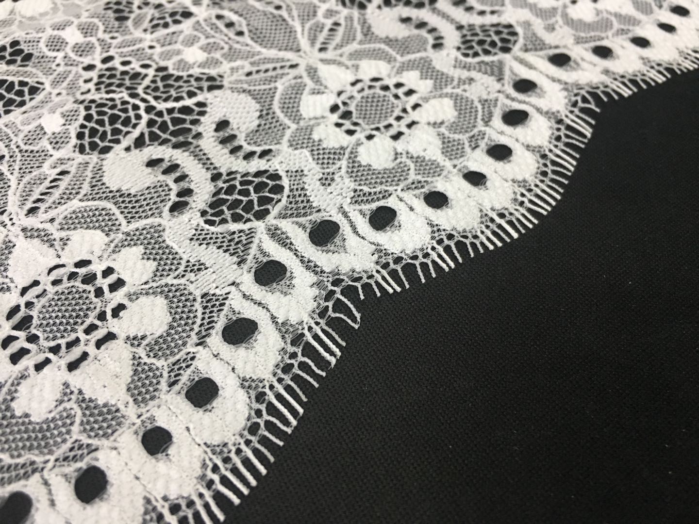 蕾丝面料个性包含手感柔软、材质轻浮而通透、具备优雅而奥秘的艺术成果。