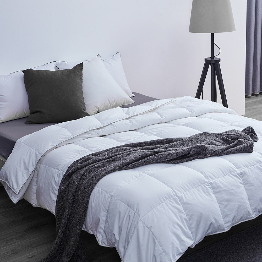 现代鹅绒被多驳回轻浮、柔软、透气的面料,这些面料不只保证了被子的温馨度,也进一步增强了鹅绒被的透气性。