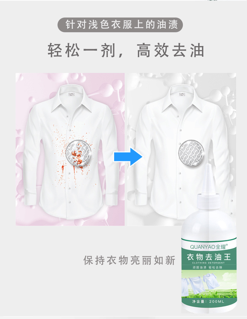 荡涤终了后,将衣物晾干,油渍即可去除。