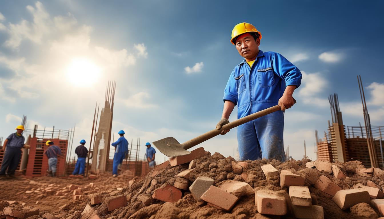 “为了生存,天这么热还搬砖。”