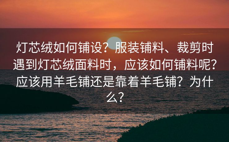 灯芯绒如何铺设?服装铺料、裁剪时遇到灯芯绒面料时,应该如何铺料呢?应该用羊毛铺还是靠着羊毛铺?为什么?